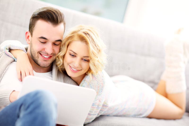 Romantische Paar Het Spelen Gitaar Bij Het Strand Stock ...