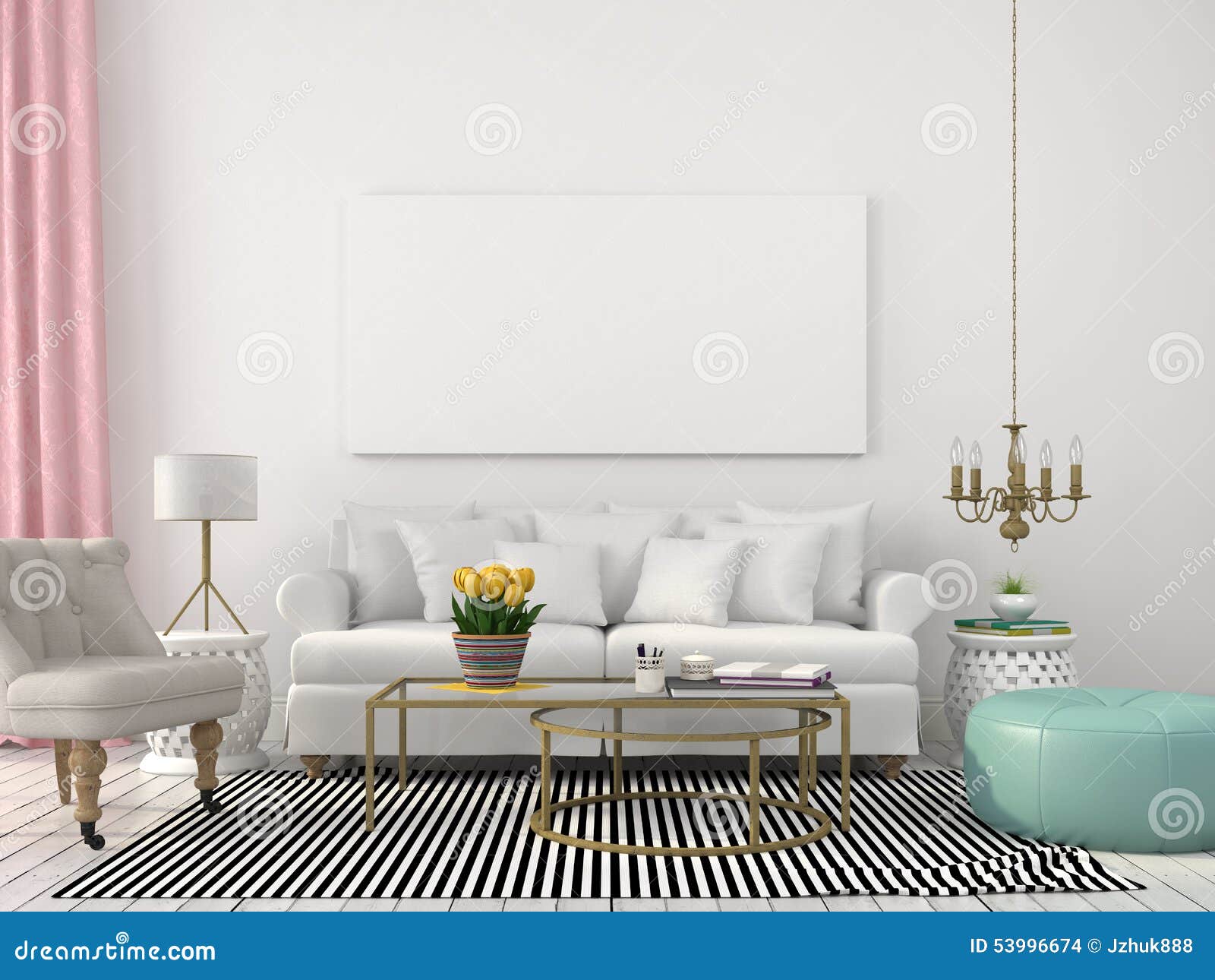 Lichte Woonkamer In Wit En Pastelkleuren Stock Foto ...